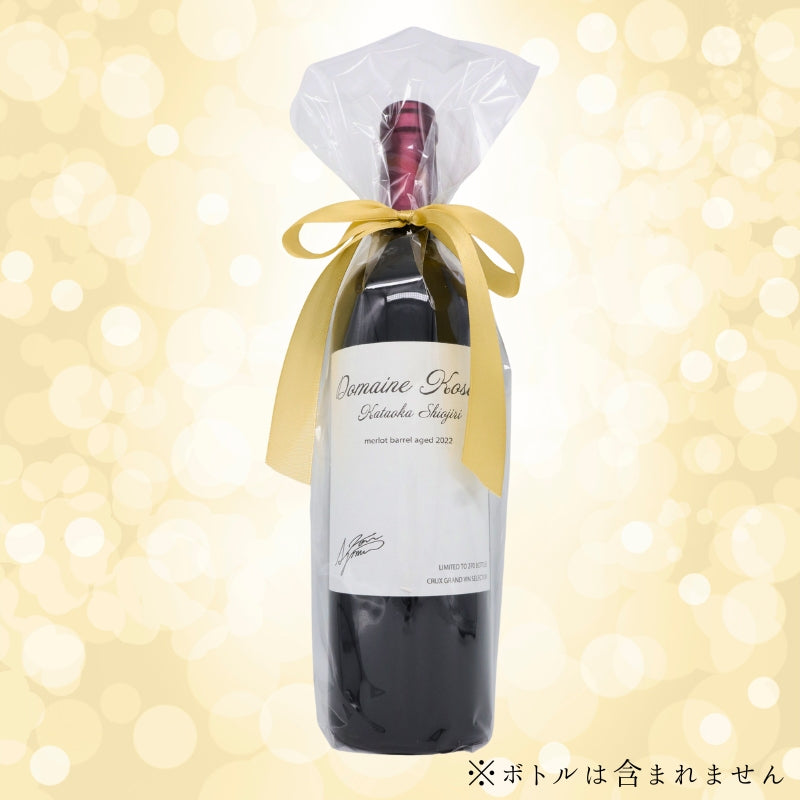 ワイン1本用ラッピング(透明袋&ゴールドリボン)